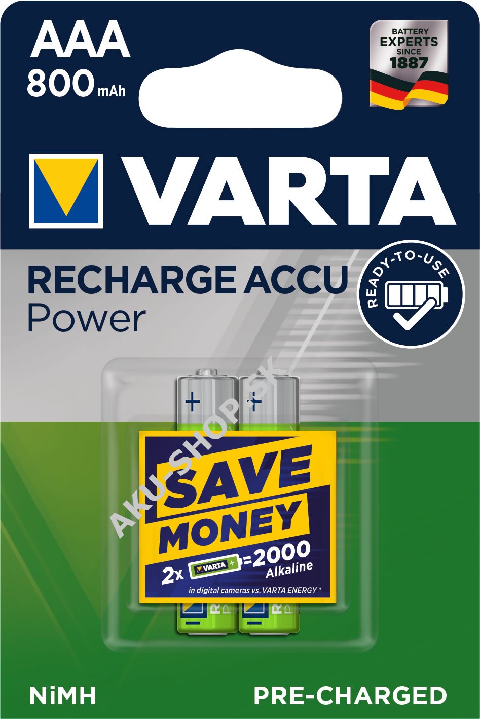 Nabíjacie batérie TOYS mikro AAA 2ks v balenie - Varta Power originál