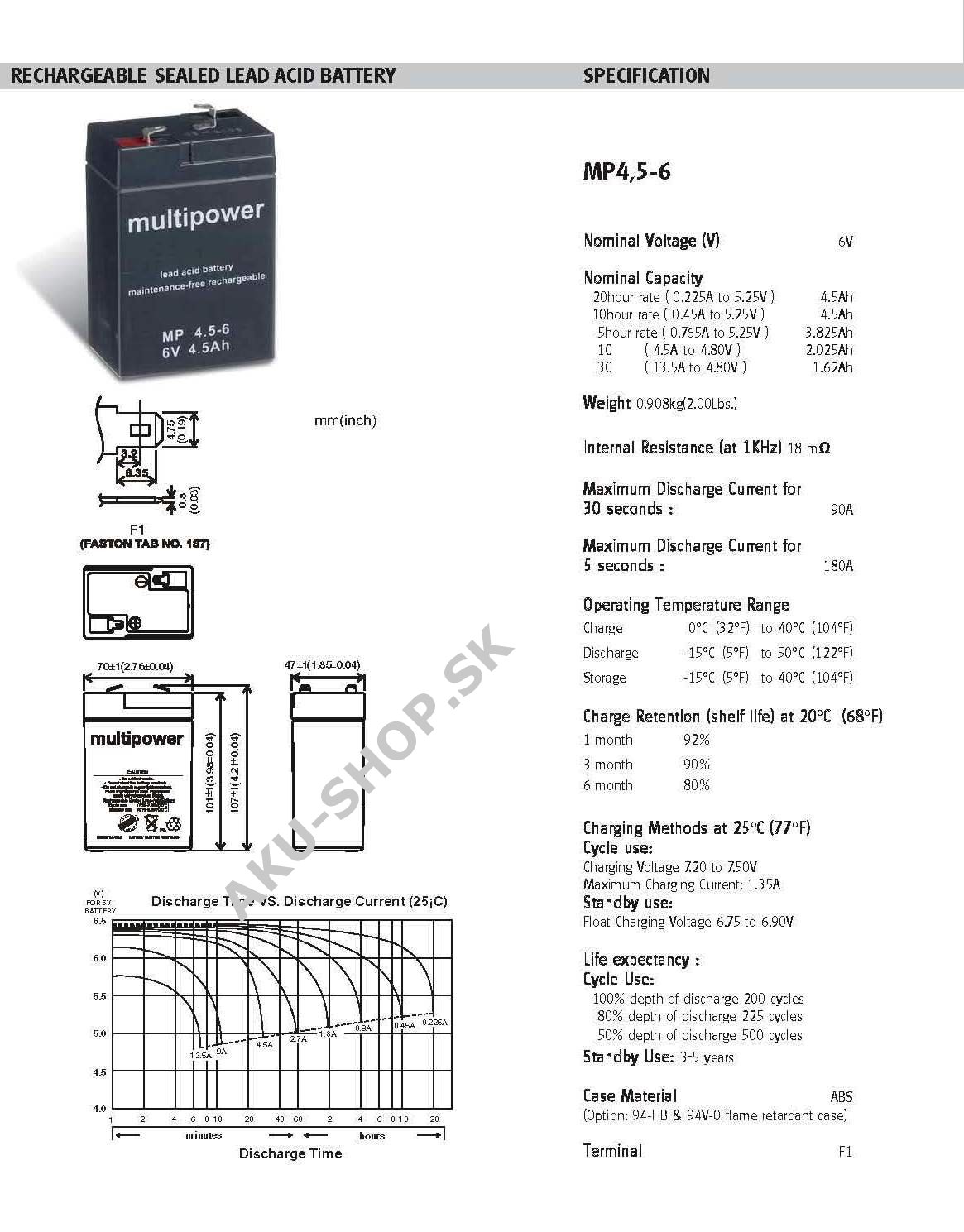 Akumulátor pre zdvíhacie pohony a záložné zdroje 6V 4,5Ah (nahrádza tiež 4Ah 5Ah)